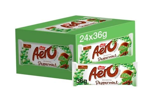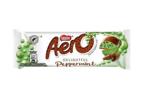 Smooth milk chocolate filled with peppermint flavoured bubbles.