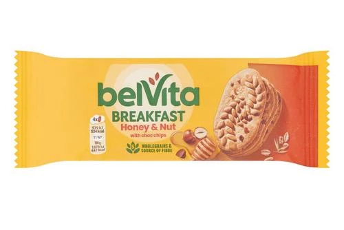Biscuits made with wholegrain cereals, honey, nuts and chocolate chips and minerals. Belvita Breakfast provides slow release carbohydrates hour after hour, through the morning so are a convenient and nutritious choice for mornings.