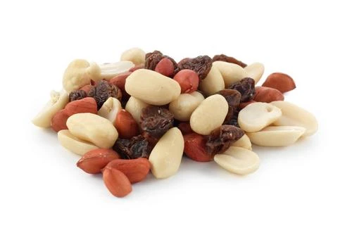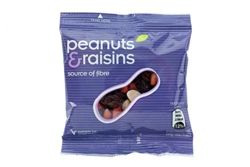 A mix of peanuts & jumbo raisins; 25 x 50g