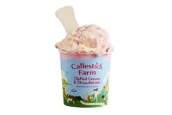 fresh whole MILK, clotted cream (MILK) (11%), dextrose, sugar, strawberry compote (8%) (strawberries (40%), sugar, modified starch, strawberry concentrate, citric acid, colour (E163)), skimmed MILK powder, emulsifier (E471), stabilisers (locust bean gum, guar gum, carrageenan), bourbon vanilla extract, natural colour (E160b(ii)).