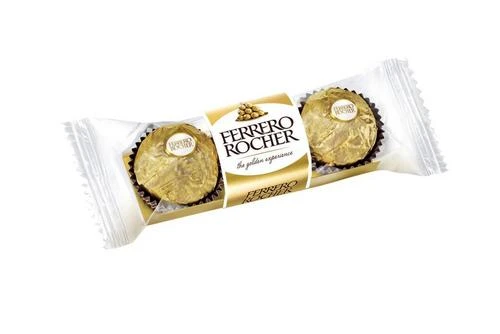 A case of 16 packs of 3 flow wrapped Ferrero Rocher chocolates. Ferrero Rocher offers a delicious taste experience due to its unique combination of layers and textures. A whole hazelnut surrounded by delicious layers of crispy wafer, a velvety filling, smooth milk chocolate and finely chopped hazelnut pieces.