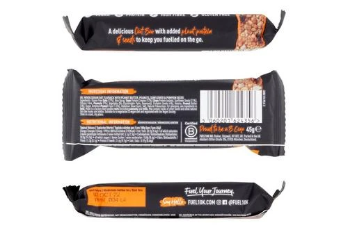 Gluten Free Oats (17%), Rice Syrup, Soya Protein Crispies (12%) (Soya Protein Isolate), Sunflower Seeds (11%), Chicory Fibre, Peanuts (9%), Vegetable Oils (Sustainable Palm, Rapeseed), Pumpkin Seeds (4%), Raisins, Peanut Butter (4%), Sugar, Defatted Peanut Flour (1.5%), Stabiliser (Guar Gum), Salt, Natural Flavourings.