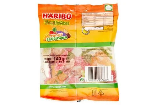 Glucose syrup, sugar, gelatine, dextrose, acids (citric acid, malic acid), acidity regulators (calcium citrates, sodium hydrogen malate), caramelised sugar syrup, fruit and plant concentrates (apple, aronia, blackcurrant, carrot, elderberry, grape, hibiscus, kiwi, lemon, mango, orange, passion fruit, safflower, spirulina), flavouring, elderberry extract, glazing agent (carnauba wax).