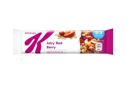 Enjoy the taste of Kellogg’s Special K Red Berries cereal wherever you go with Special K Red Berry breakfast cereal bars. Each cereal bar is made with rice, wheat, and barley mixed with cranberry fruit pieces dipped in a smooth strawberry flavoured syrup layer. Kellogg’s Special K Red Berries breakfast cereal bars are ideal for a mid-morning pick-me-up or a satisfying on-the-go snack or breakfast. Special K cereals & cereal bars contain ≥ 15% of the nutrient reference value of vitamins B3, B6 and B9 which contribute to the reduction of tiredness and fatigue.