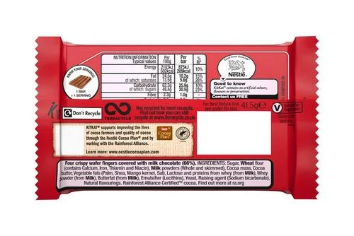Sugar, WHEAT flour (contains Calcium, Iron, Thiamin and Niacin), MILK powders (Whole and Skimmed), Cocoa mass, Cocoa butter, Vegetable fats (Palm, Shea/ Illipe/ Mango kernel/ Sal), LACTOSE and proteins from whey (from MILK), Whey powder (from MILK), Butterfat (from MILK), Emulsifiers (Lecithins), Yeast, Raising agent (Sodium bicarbonate), Natural vanilla flavourings, Natural flavourings.