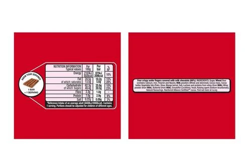 Four crispy wafer fingers covered with milk chocolate (66%).