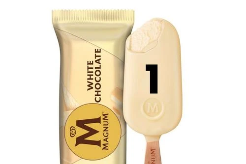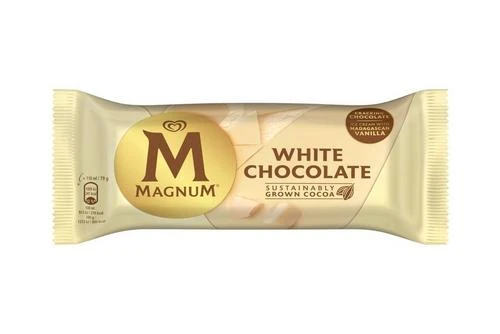 Ice cream with vanilla from Madagascar coated with white chocolate (26%)