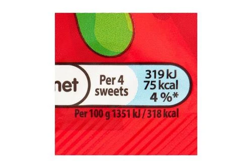 Glucose syrup, sugar, starch, water, gelatine, acids (malic acid, acetic acid, citric acid), colours (anthocyanins, vegetable carbon, paprika extract, lutein, curcumin), vegetable oils (palm kernel, coconut, sunflower), flavourings, glazing agent (carnauba wax).