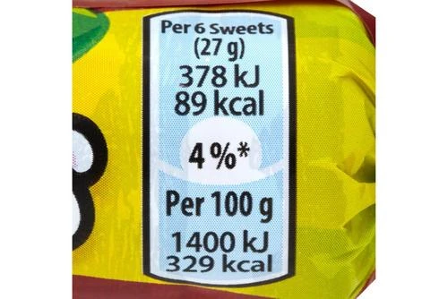 Glucose syrup (contains SULPHITES), sugar, starch, gelatine, acids (malic acid, acetic acid), colours (anthocyanins, vegetable carbon, paprika extract, lutein, curcumin), flavourings, vegetable oils (palm kernel, coconut, sunflower), glazing agent (carnauba wax).