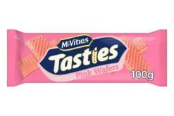 WHEAT Flour, Vegetable Oils (Palm, Coconut), Sugar, Dextrose, Colour (Beetroot Red), Emulsifier (SOYA Lecithin), Salt, Flour Treatment Agent (Ascorbic Acid).