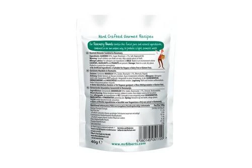 ALMONDS 93%, Sugar, Rosemary 1%, Sea Salt, Rapeseed Oil.