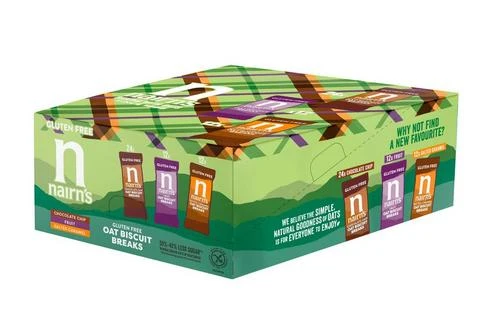 Mixed case of Gluten Free Oat Biscuit Breaks – 3 flavours; Chocolate Chip, Fruit and Salted Caramel.