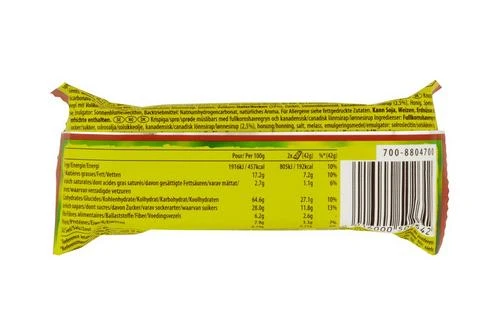 Whole grain rolled OATS (60%), sugar, sunflower oil, Canadian maple syrup (2%), honey, natural flavouring, salt, emulsifier (sunflower lecithin), raising agent (sodium bicarbonate), molasses.