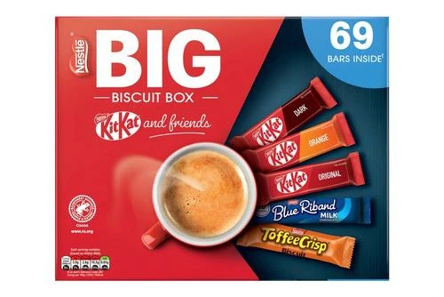 Contains an assortment biscuits including BREAKAWAY, BLUE RIBAND, TOFFEE CRISP, KITKAT and YORKIE.