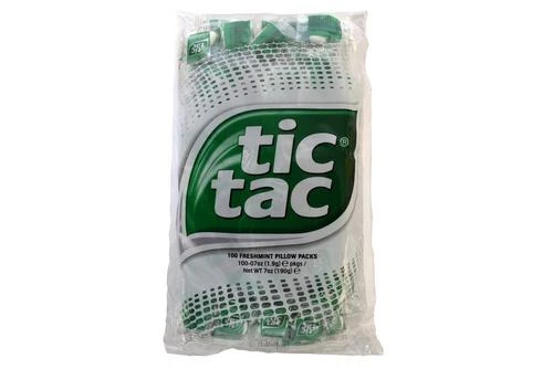 A case of 10 bags. Each bag contains 100 x 4 tic tac freshmint pills in a pillow pack – 1.9g.