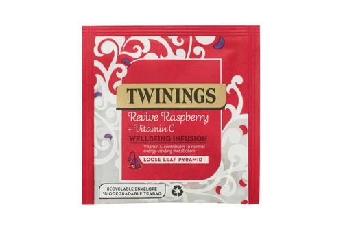 Raspberry and Hibiscus Flavoured Herbal Infusion with Added Vitamin C. Rosehips, Hibiscus (20%), Apple Pieces, Beetroot, Natural Raspberry Flavouring with other Natural Flavourings (10%), Roasted Chicory Root, Vitamin C, Natural Flavouring.