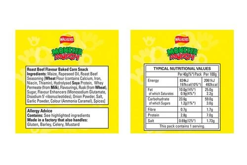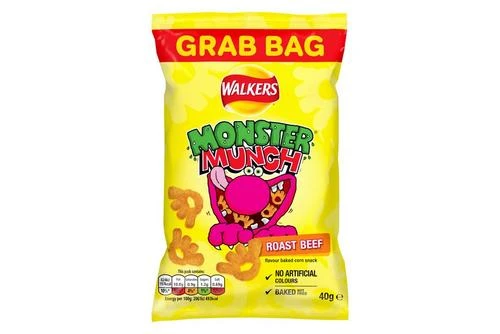 Case of 30 single packs of Mega Monster Munch Roast Beef Snacks (40G). Our Mega Monster Munch Roast Beef Snacks 40g are recommended for stocking in Education, Healthcare & Workplace