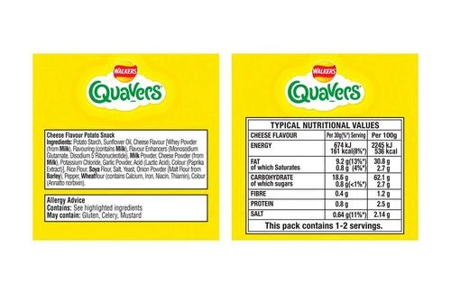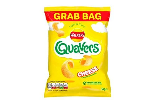 Case of 30 single packs of Walkers Quavers Cheese Snacks (34G). Our Walkers Quavers Cheese Snacks 34g are recommended for stocking in Education, Healthcare & Workplace